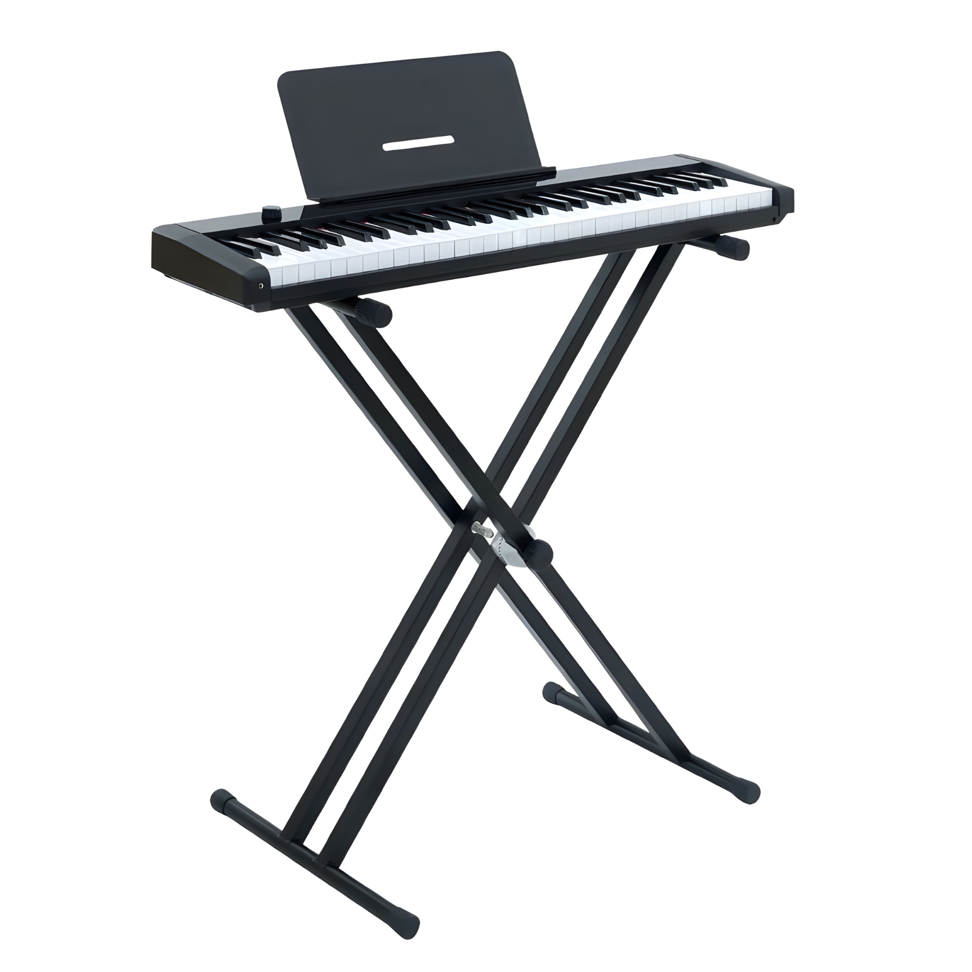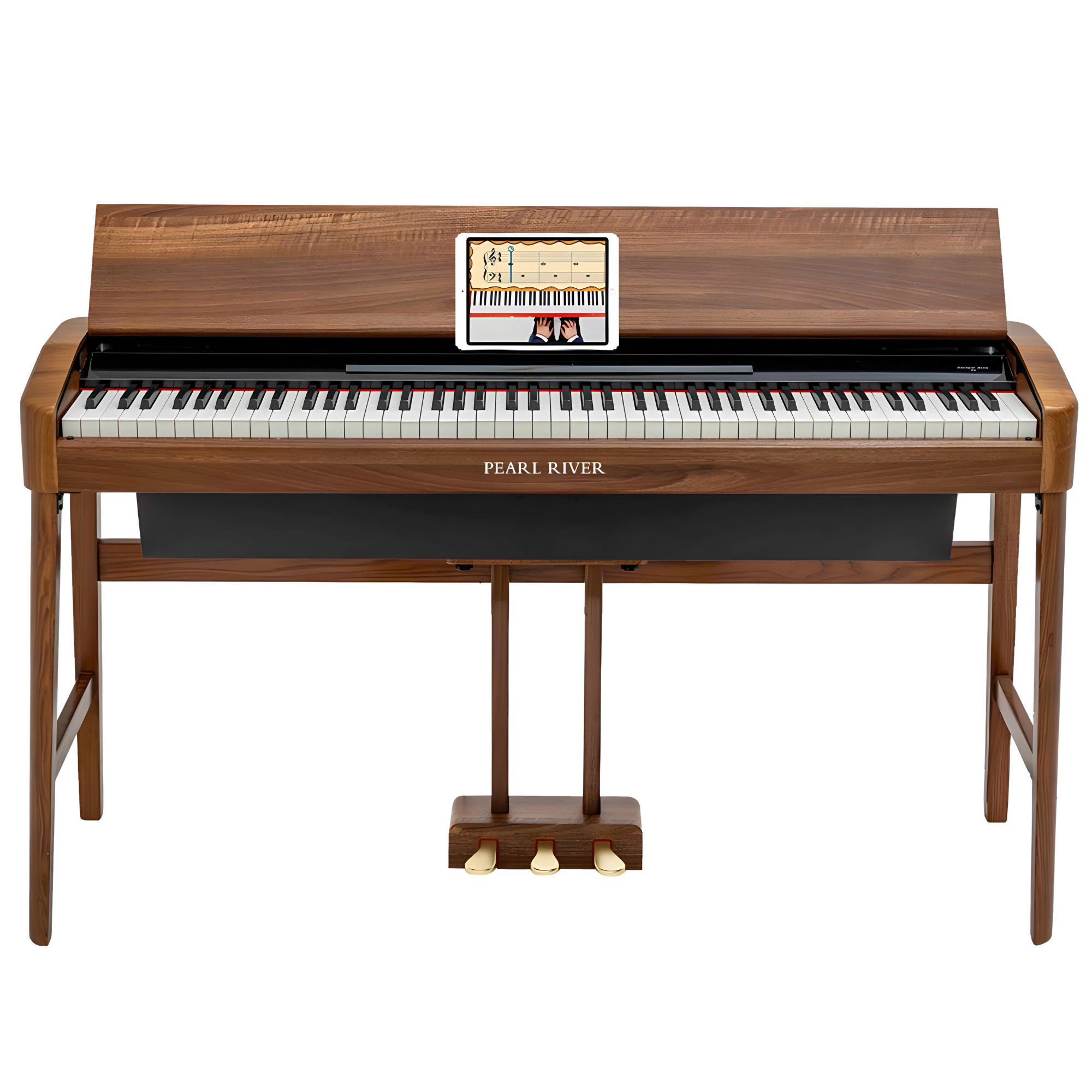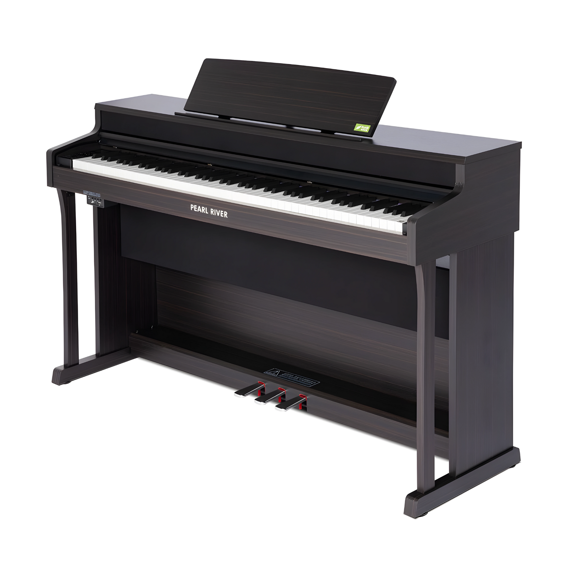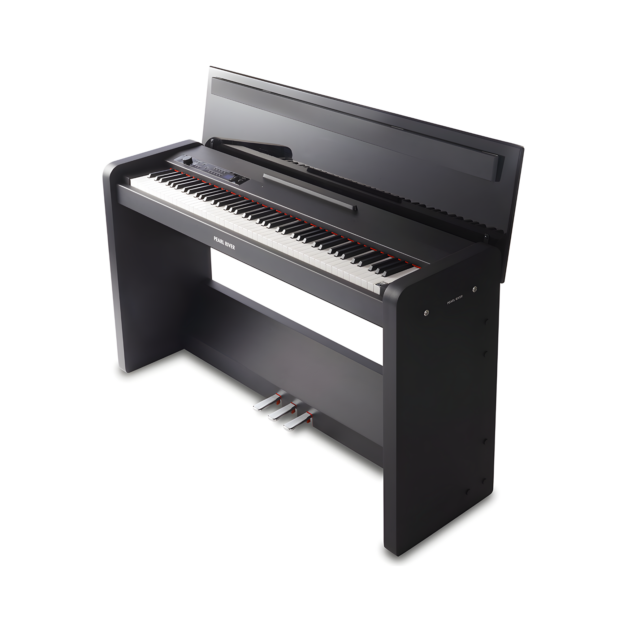 Thiết kế hiện đại với lớp phủ PVC sợi carbon và giá để bản nhạc có thể gập lại tiện dụng.